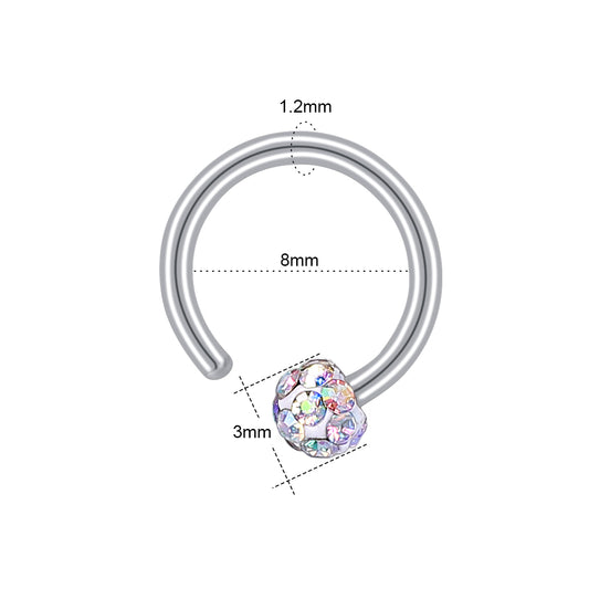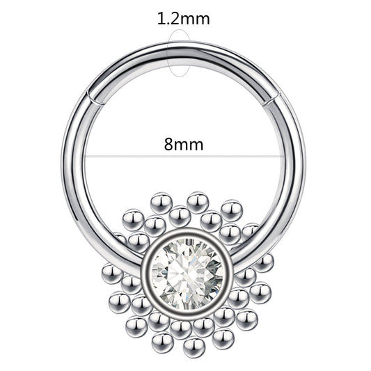 16G Round Zircon Clicker Septum Ring Stainless steel Helix Cartilage Piercing
