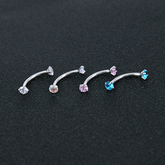 2 Pcs 16g Eyebrow Ring Piercing Barbell Round Crystal Zirconia Curve Helix Daith Piercing