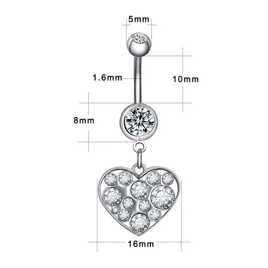 14g Drop Dangle Heart Shape Belly Button Rings Cubic Zirconia Navel Piercing Jewelry