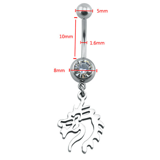 14g Dragon Stainless Steel Belly Button Rings Cubic Zirconia Dangle Navel Piercing Jewelry