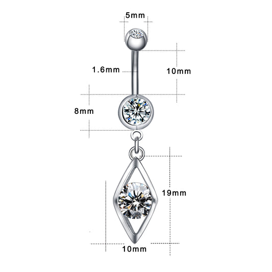 14g Prismatic Stainless Steel Belly Button Rings White Zircon Dangle Navel Piercing Jewelry