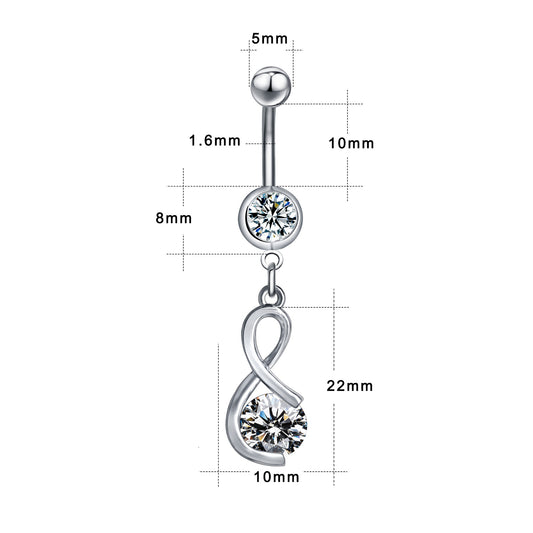 14g Number 8 with White Zircon Belly Button Rings Stainless Steel Dangle Navel Piercing Jewelry