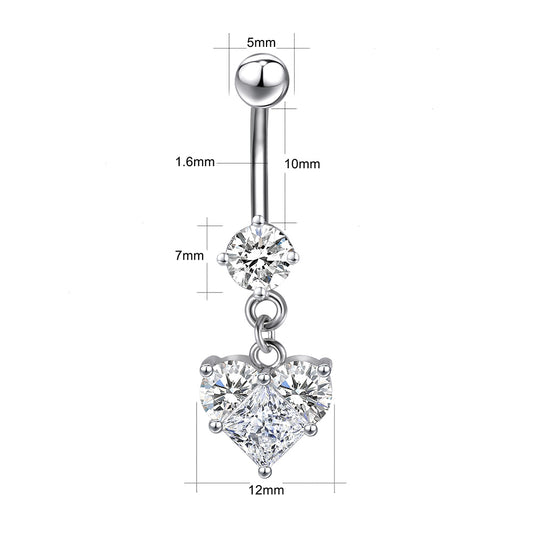 14G Heart Zircon Belly Navel Rings Stainless Steel Belly Button Rings