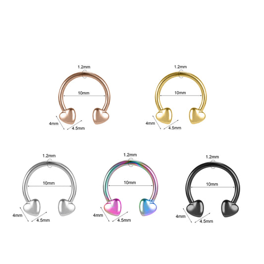 16G Peach Heart BCR NoseRings Horseshoe Nose Septum Piercing Stainless Steel Lip Piercing