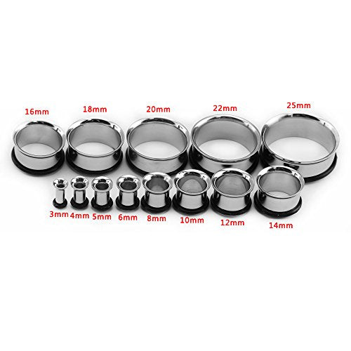 6 Pairs 316 Stainless Steel Single Flare Tunnels Ear Gauges with Silicone O-Rings-Economic Set