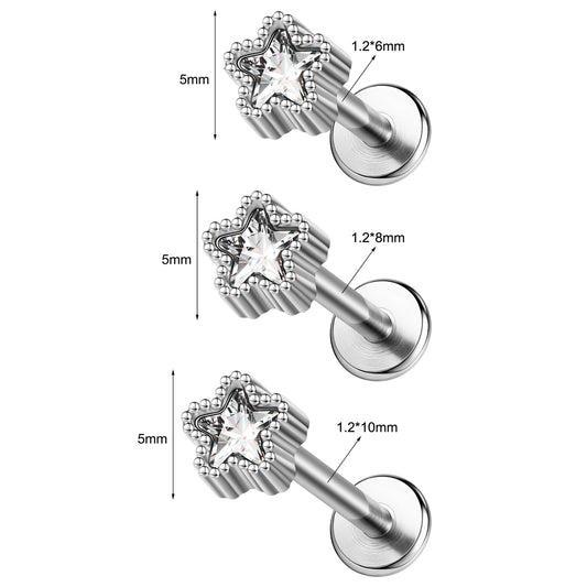20G Star Nose Piercing Eyebrow Piercing Stainless Steel Helix Cartilage Piercing
