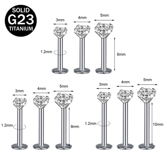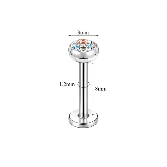 16G Push in G23 Titanium Labret Rings Simple Zirconia Tragus Helix Conch Piercing