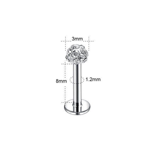 16g/18g Clear Crystal Labret Ring Internal Thread Labret Studs Monroe Medusa Piercing