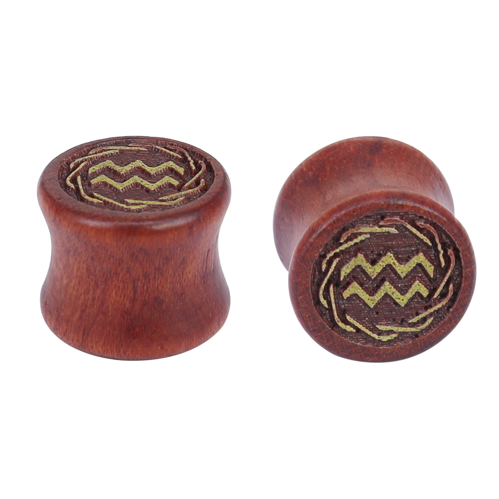 1 Pair 8-20mm Reddish Brown Aquarius Ear Plug Tunnel Carved Solid Wood Expander Ear Gauges Piercings