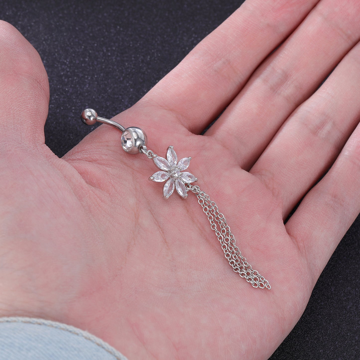 14g Drop Dangle Flower Tassels Belly Button Rings Rose Gold Crystal Navel Piercing Jewelry