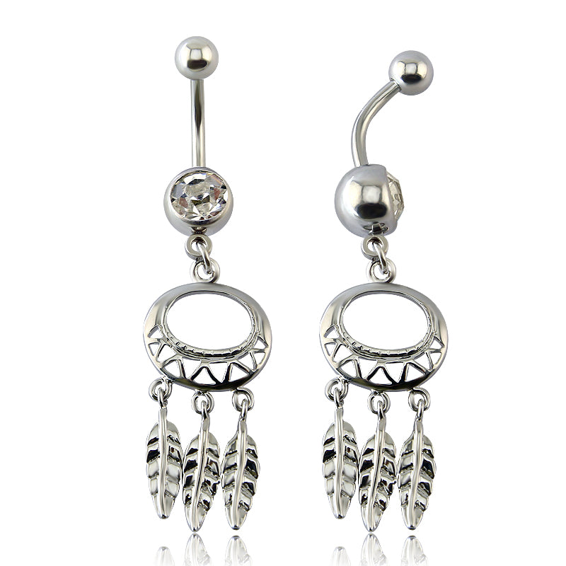 14g Leaf Dangle Belly Button Rings Round Stainless Steel Navel Piercing Jewelry
