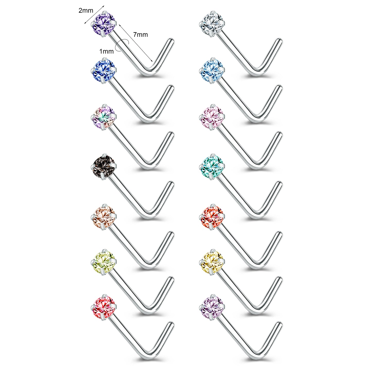 14Pcs/Set Cubic Zirconia Nose Stud Piercing L Shaped-Economic Set
