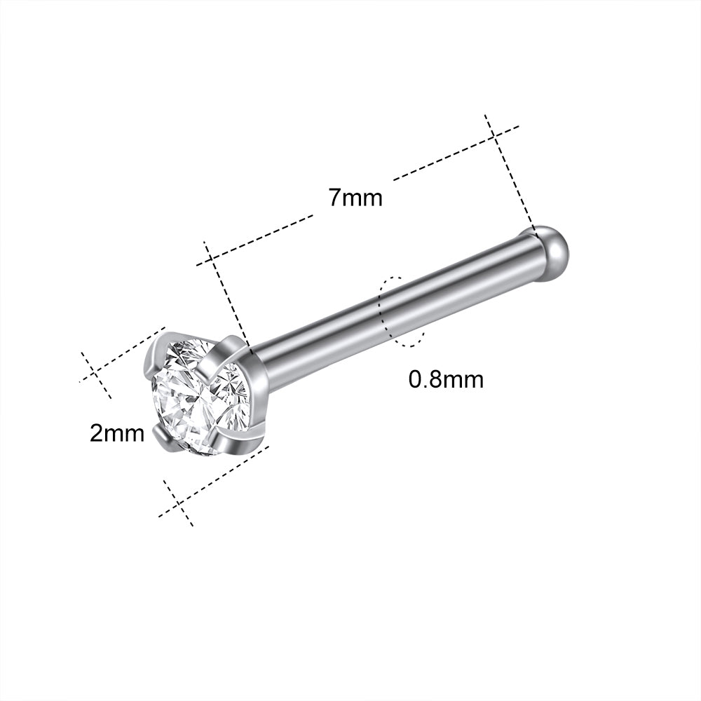 - Hook Type: Nose Bone, Stone: prong setting with Cubic Zirconia-2mm.