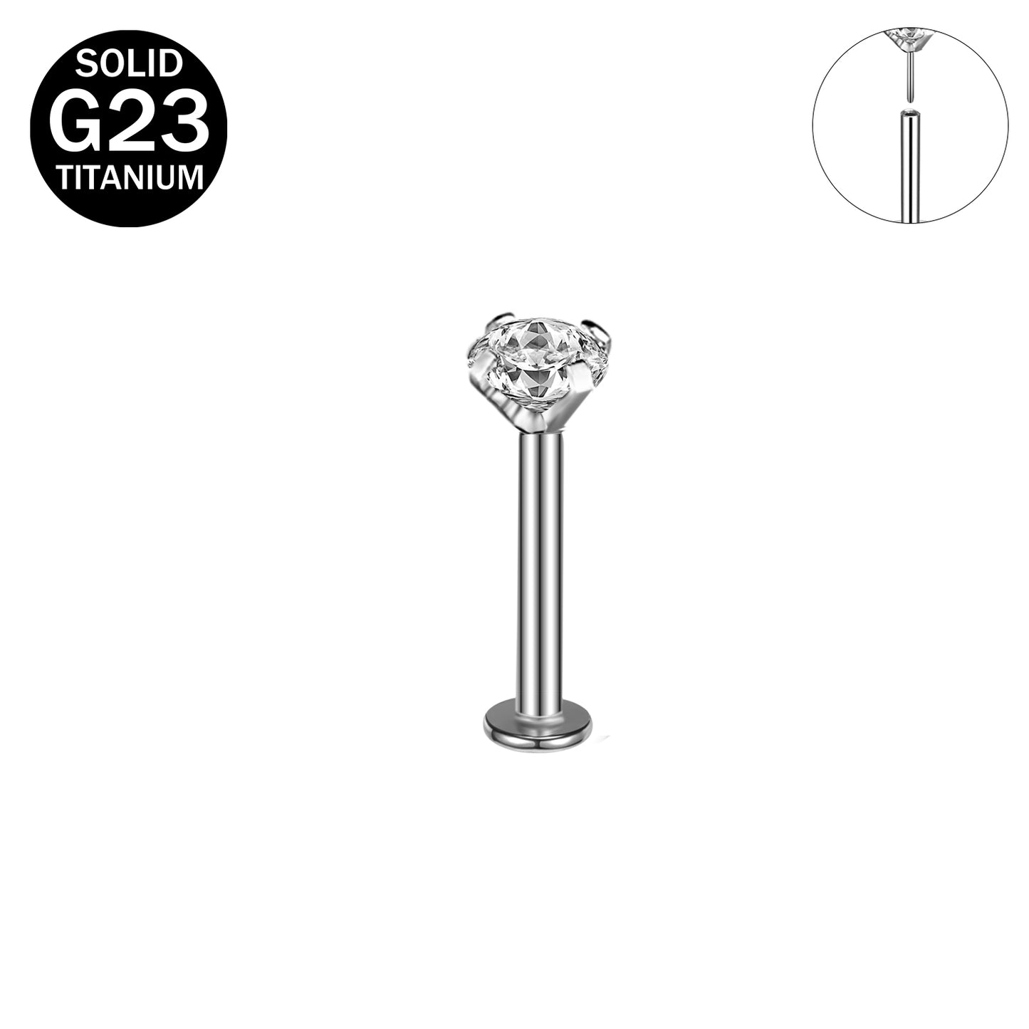 16G Push in G23 Titanium Labret Rings Simple Zirconia Tragus Helix Conch Piercing