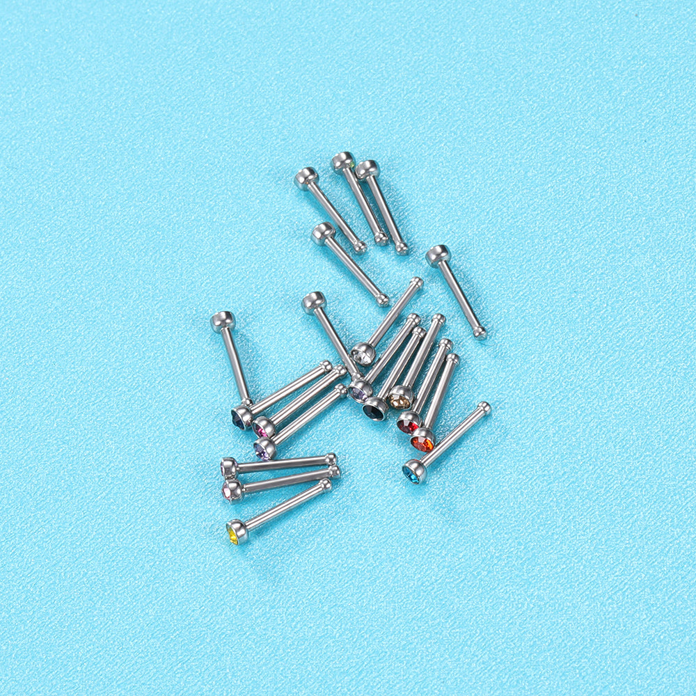 18g/20g Shiny Zircon Nose Stud Flat Back Nose Ring Internal Thread Nostril Piercing