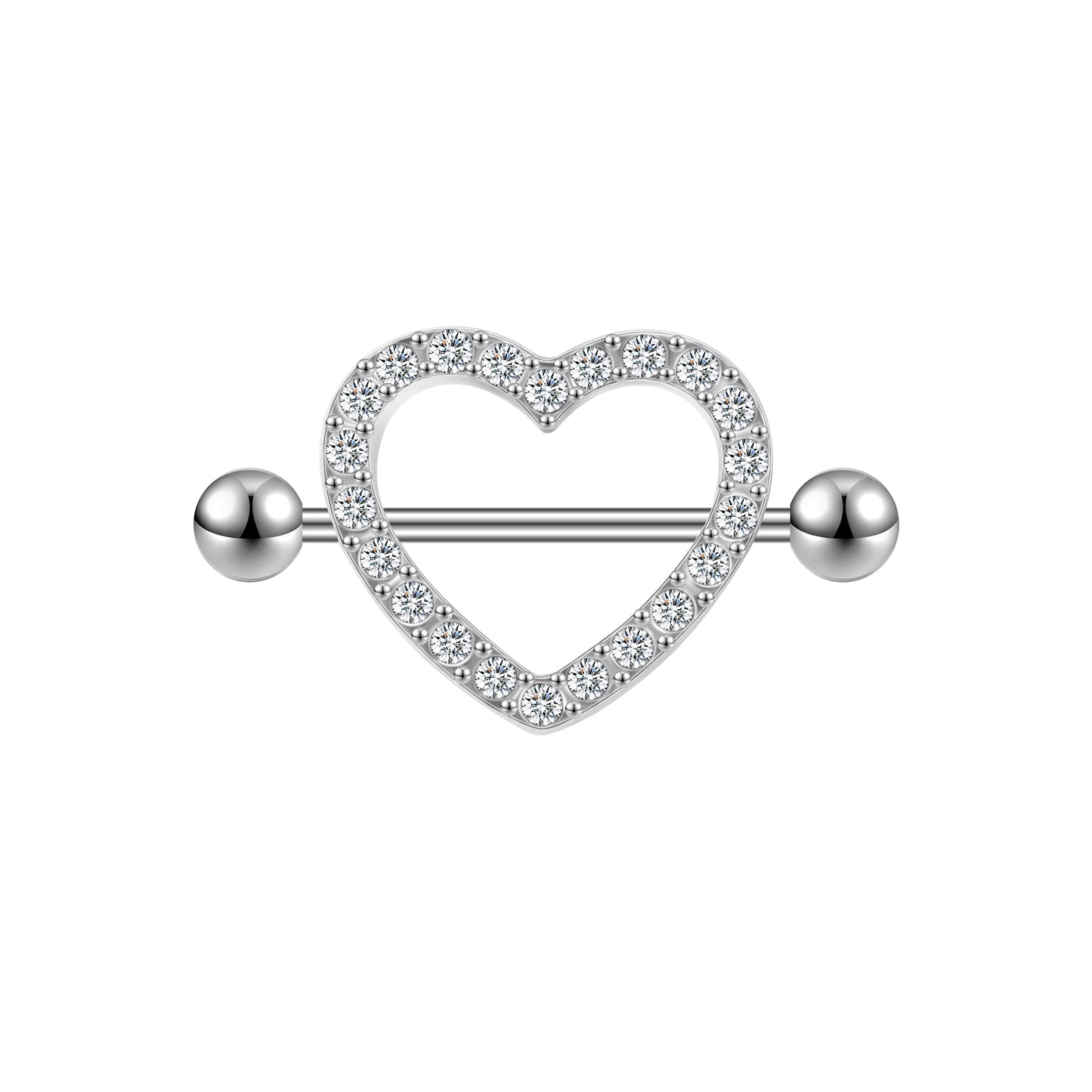 2Pcs 14G Heart Nipple Rings White Crystal Nipple Piercing Barbell Jewelry