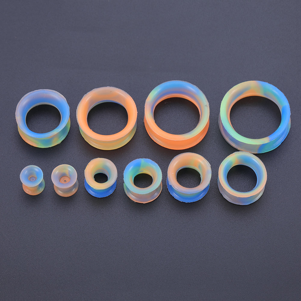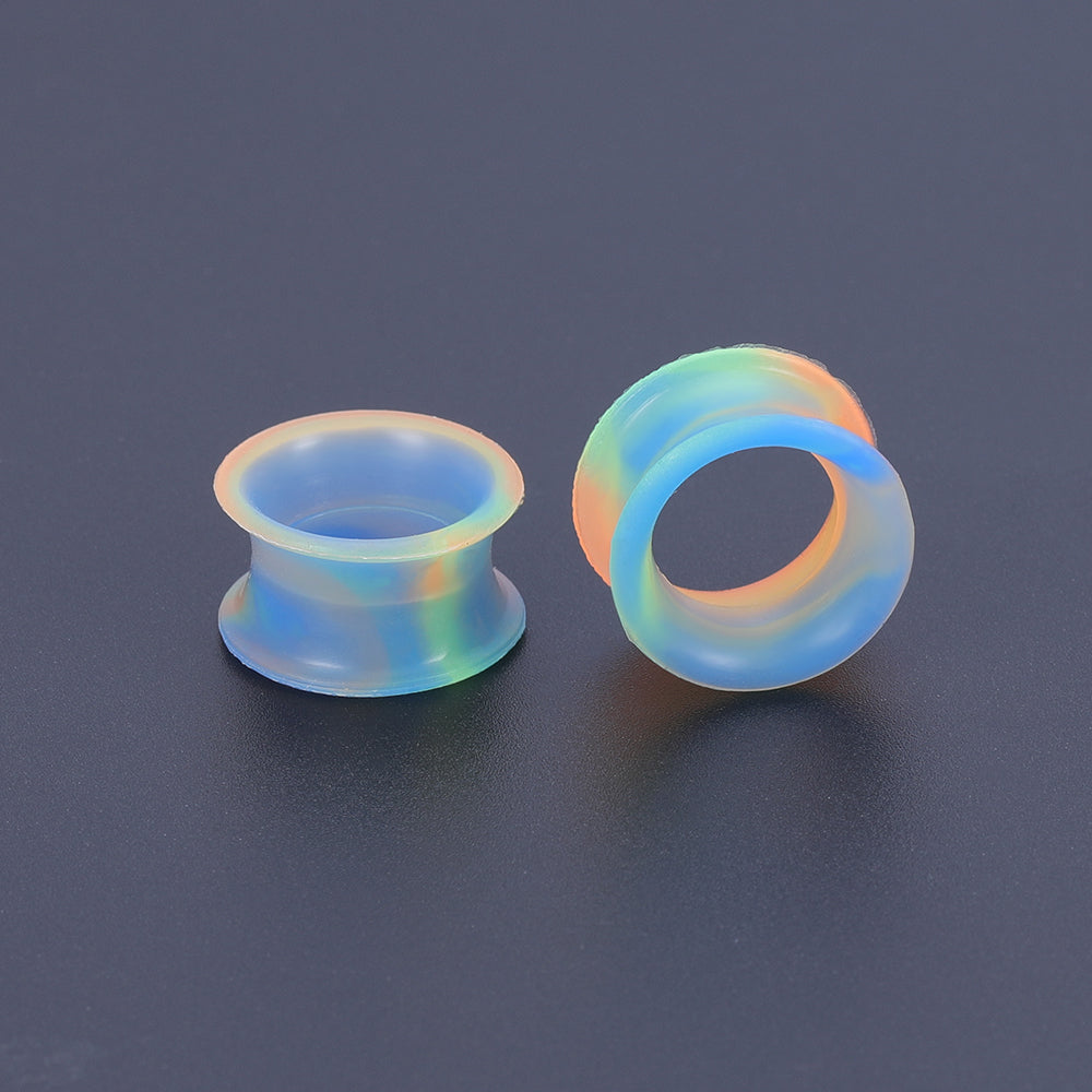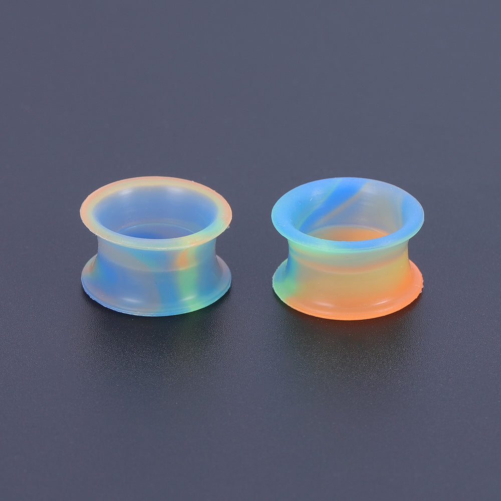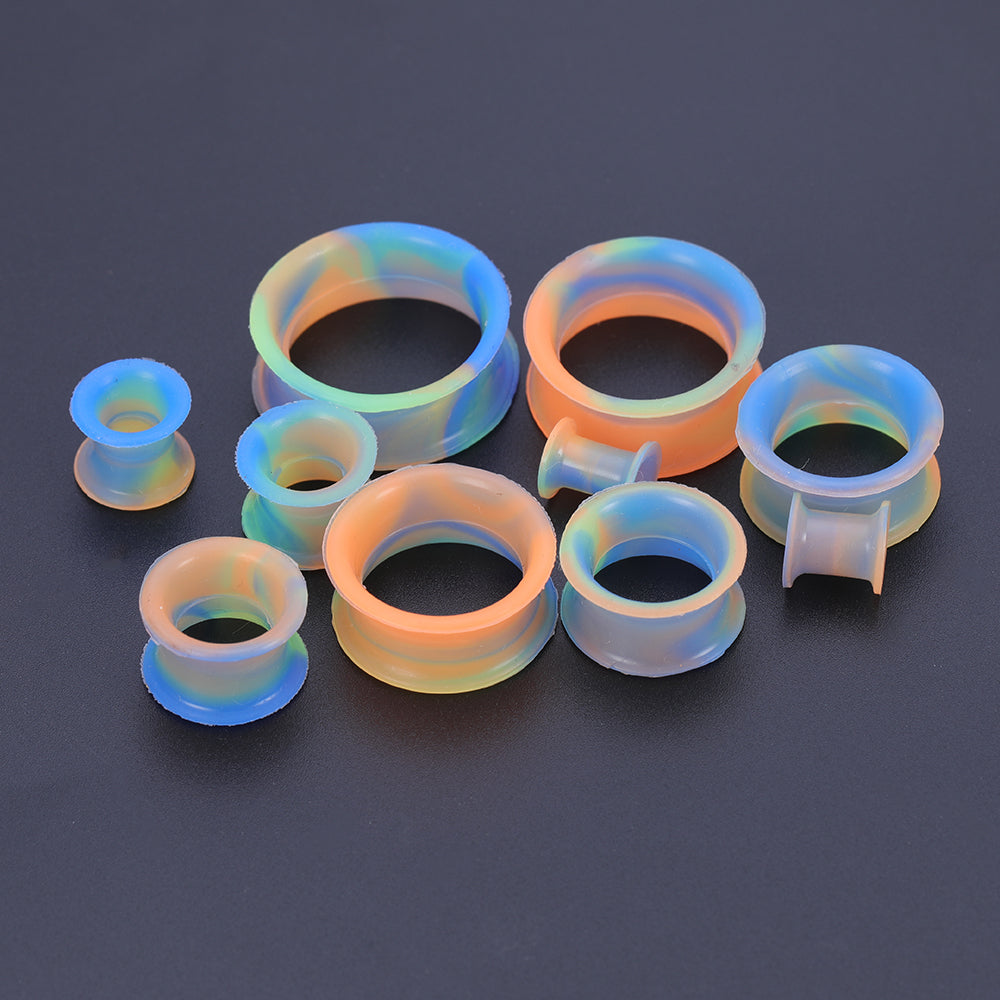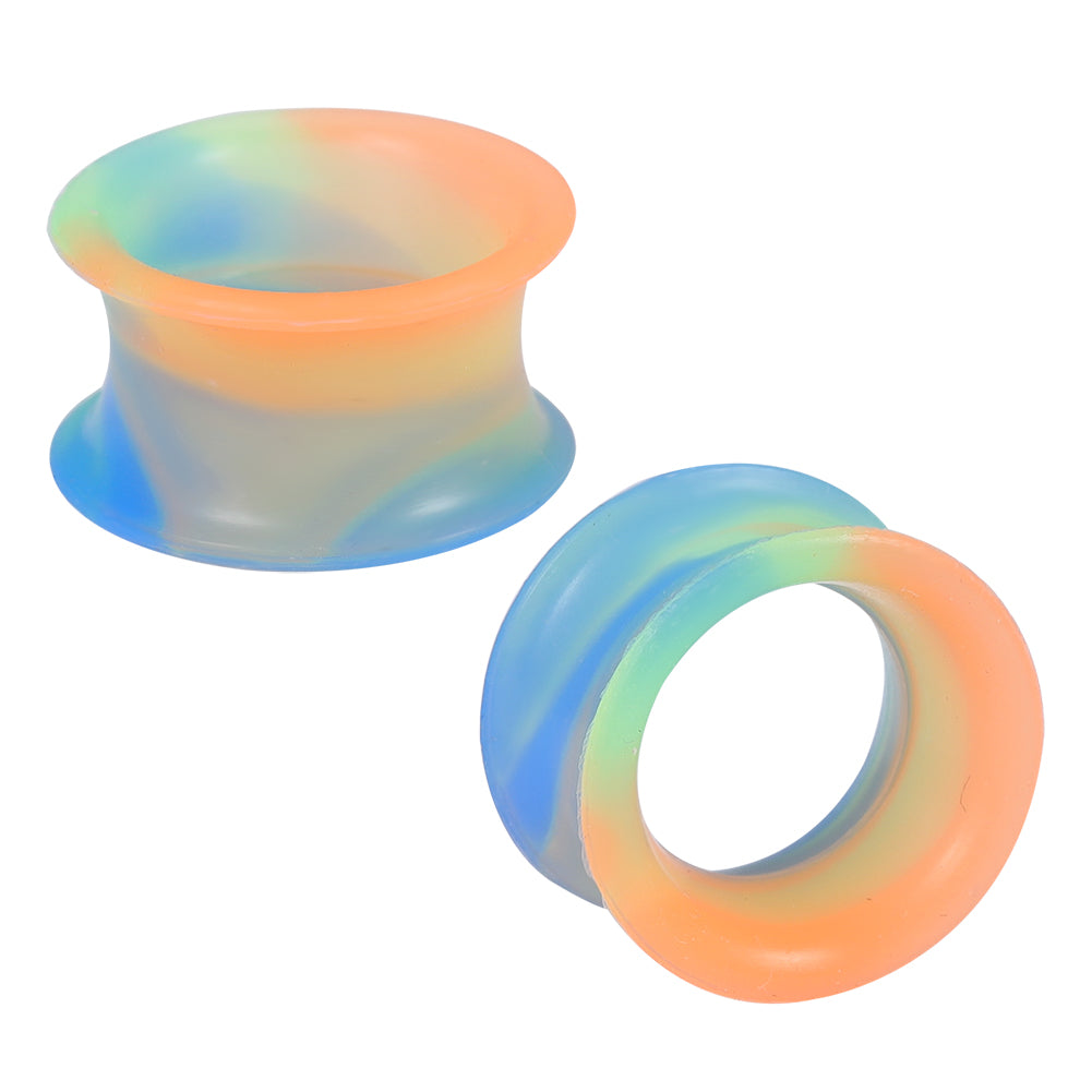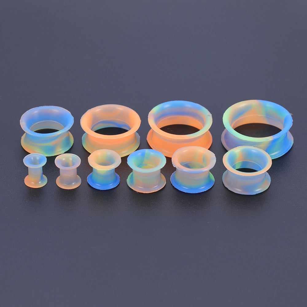 5-22mm Thin Silicone Flexible Blue Green Orange Ear Tunnels Double Flared Expander Ear Gauges