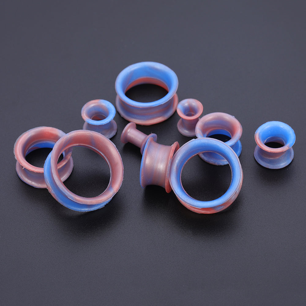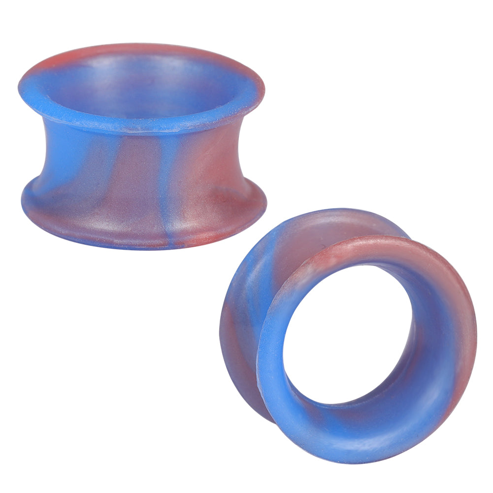 5-22mm Thin Silicone Flexible Light Blue Red Ear Tunnels Double Flared Expander Ear Gauges