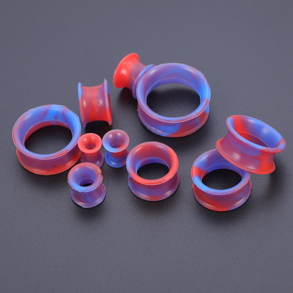 5-22mm Thin Silicone Flexible Red Blue Ear Tunnels Double Flared Expander Ear Gauges