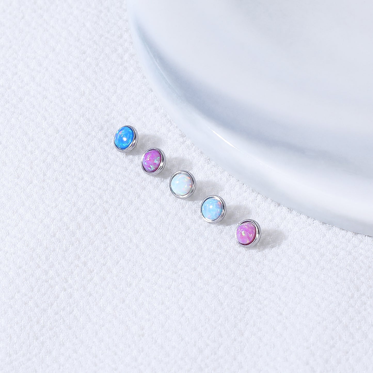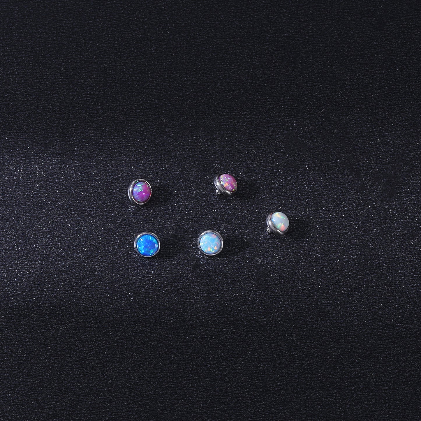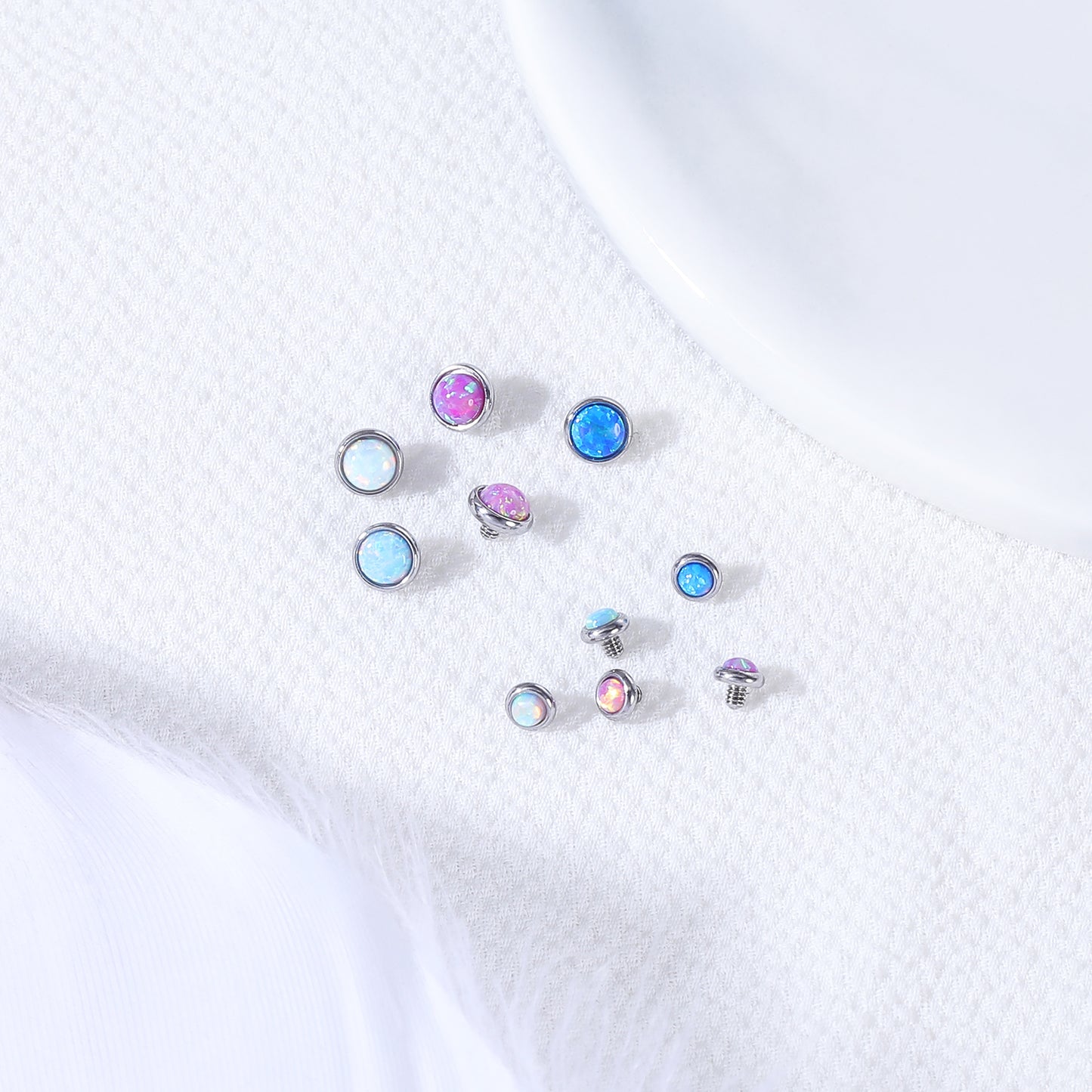 5pcs Opal Dermal Anchor Tops Surgical Steel Internally Threaded Skin Diver Piercings