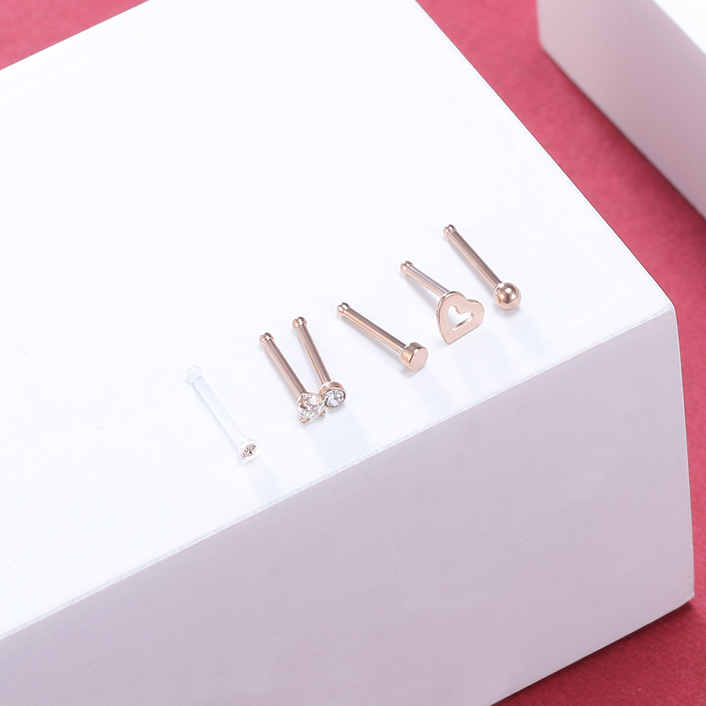 6Pcs/Set Rose Gold Nose Stud Rings Clear Bioflex Nose Bone Piercing-Economic Set