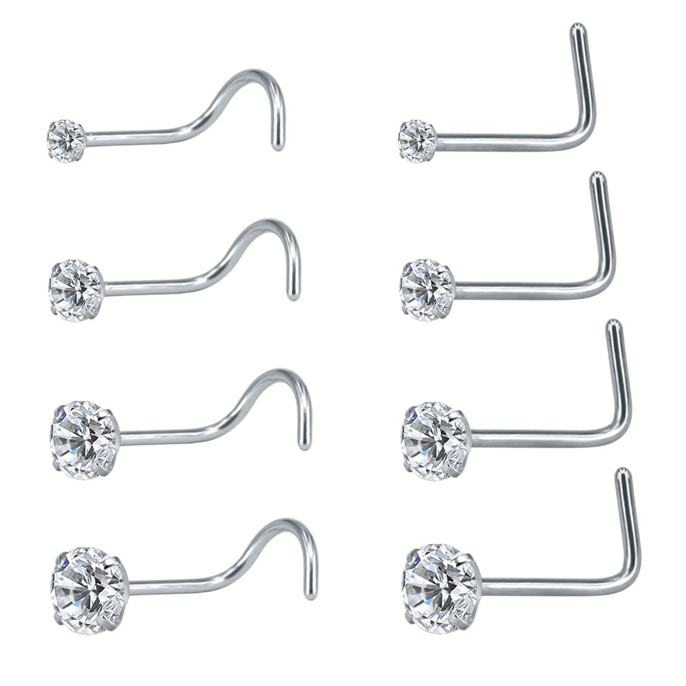 8Pcs/Set CZ Nose Piercing L Shaped/Screws Nose Rings-Economic Set