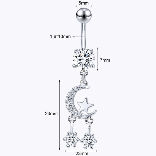 Moon Dangle Belly Button Rings White Crystal Belly Navel Piercing
