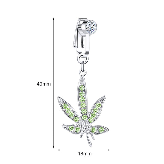 Fake Silver Belly Navel Clip Leaf Crystal Belly Button Ring