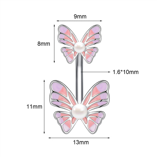 14G Purple Pink Butterfly Belly Rings Pearl Navel Piercing Stainless Steel Belly Navel Button Rings