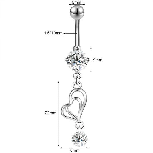 Heart Dangle Belly Button Rings White Crystal Belly Navel Piercing