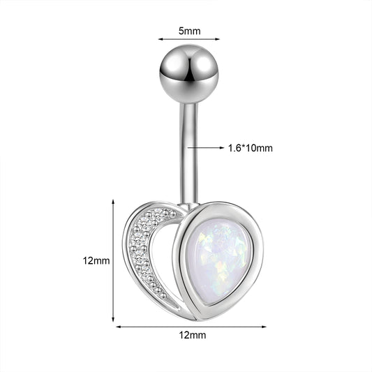 Heart Shape Belly Button Rings Opal Crystal Belly Navel Piercing