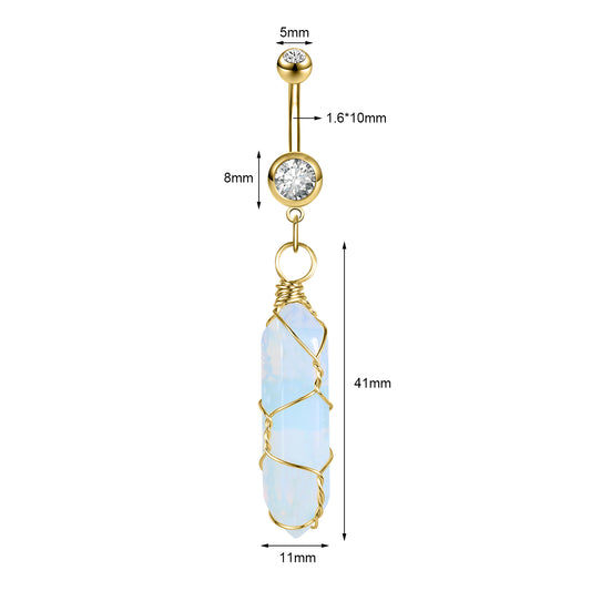14g Opalite Dangle Belly Button Rings Crystal Belly Navel Piercing Jewelry