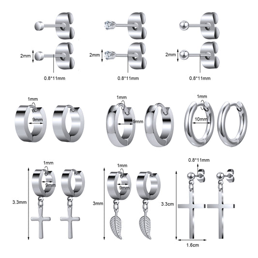 18Pcs/Set Cross Leaf Stud Earring Silver Black Ear Stud-Economic Set