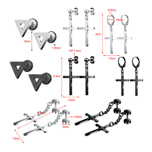16Pcs/Set Cross Triangle Stud Earring Silver Black Ear Stud-Economic Set