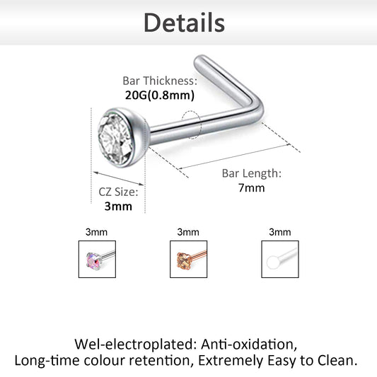 10Pcs/Set Multicolor Nose Piercings Zirconia Nose Stud L Shaped-Economic Set