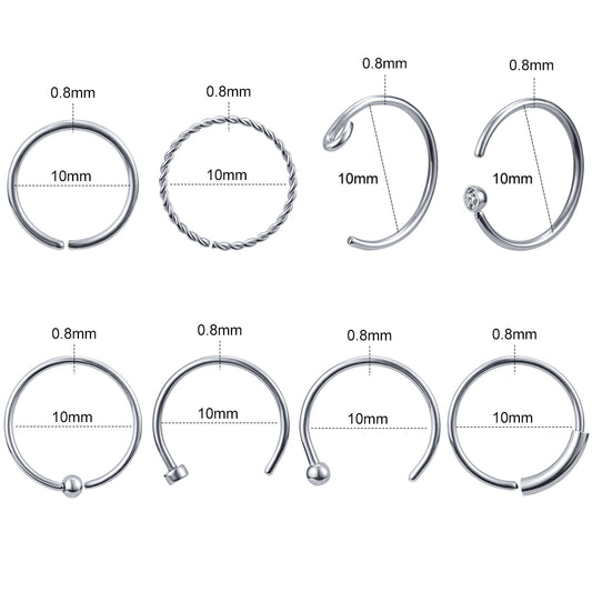 16Pcs/lot 20G Sliver Nose Septum Rings Stainless steel Helix Cartilage Piercing-Econonmic Set