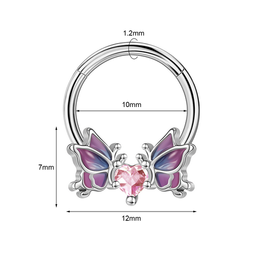 16g Butterfly Nose Ring Pink Zircon Septum Ring Piercing Jewelry