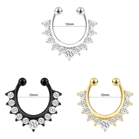 18g Clip on Nose Ring Bling Crystal Septum Ring Non-Piercing Jewelry
