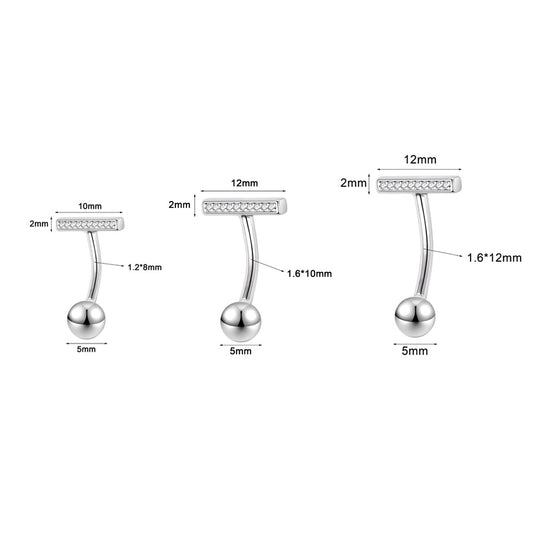 16G 925 Sterling Silver Belly Rings T Shape Navel Rings Piercing Shiny Zirconia Belly Button Ring