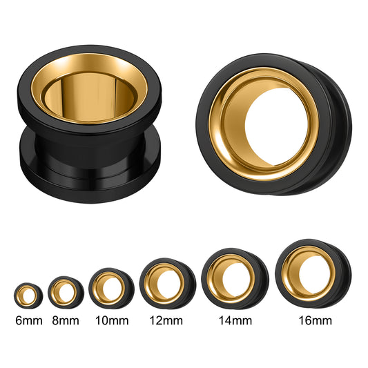 1 Pair 6-16mm Ear Plug Tunnel Double Flare Ear Gauges Black&Gold Ear Expanders