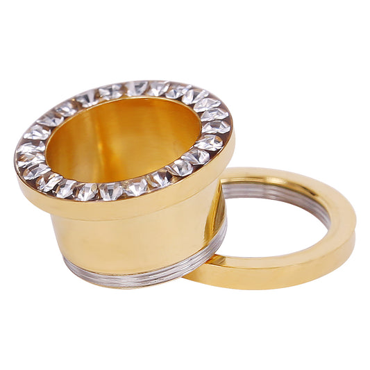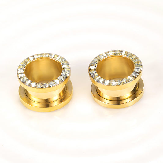 1 Pair 2.5-25mm Ear Plug Tunnel Gold Plated CZ Crystal Stainless Steel Ear Gauges