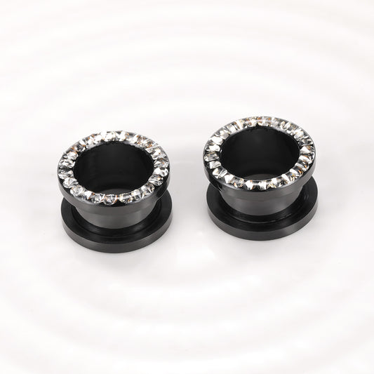 1 Pair Luxury Zircon Ear Plugs Gauges Screw Flesh Plugs Ear Expander