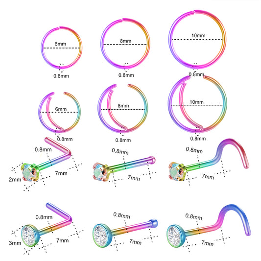 12Pcs/Set Multicolor Nose Stud Ring Piercing Nose Bone/L Shaped/Nose Screws-Economic Set