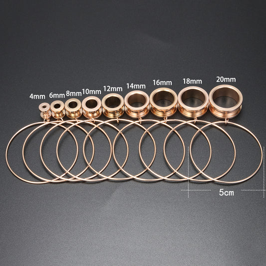 1 Pair 4-20mm Big Circle Ear Plug Tunnel Rose Gold Stainless Steel Round Expander Ear Gauges