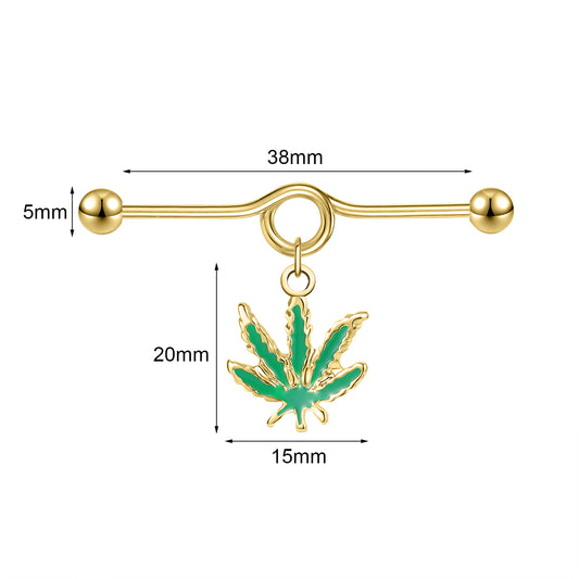 14G Maple Leaf Industrial Barbell Gold Color Helix Cartilage Piercing