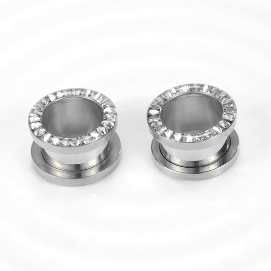 1 Pair Luxury Zircon Ear Plugs Gauges Screw Flesh Plugs Ear Expander
