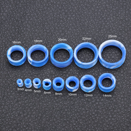3-25mm Thin Silicone Flexible Blue White Ear Tunnels Double Flared Expander Ear Gauges