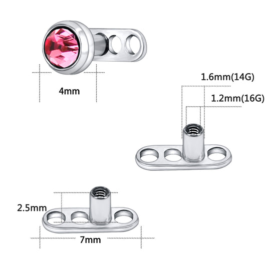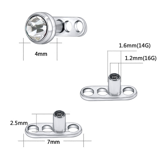 2Pcs 14g Surgical Steel Cubic Zirconia Dermal Anchor Micro Dermals Piercing