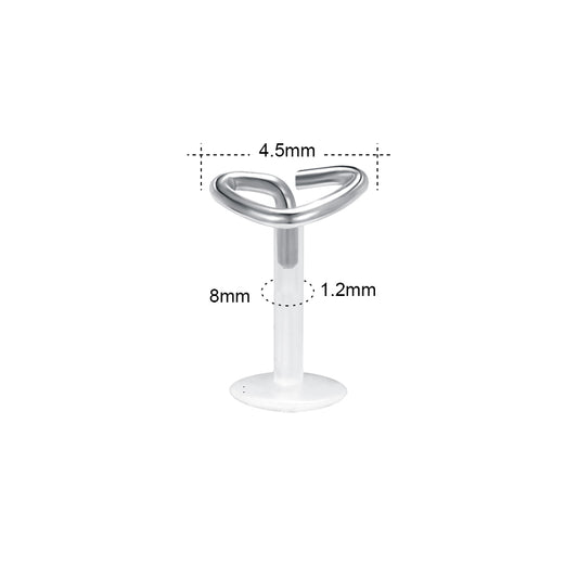 16G Rose Gold & Sliver Heart Shape Labret Rings Arcylic Conch Tragus Helix Monroe Lip Piercing