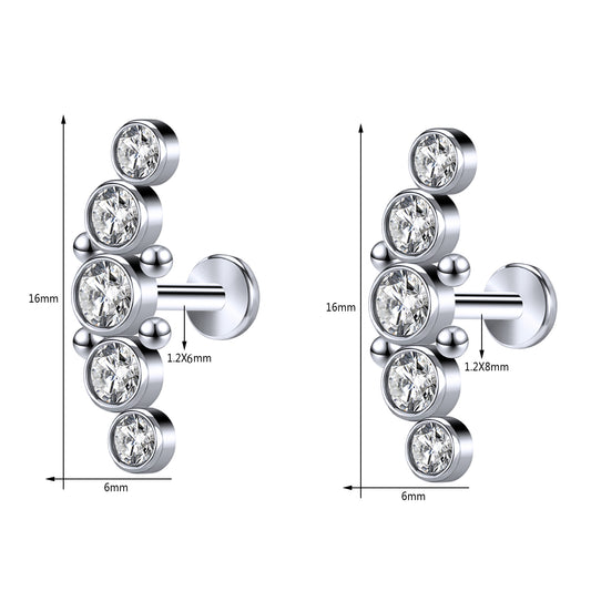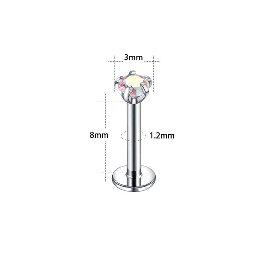 16g G23 Titanium Labret Ring Bling Zircon Stud Earring Threaded Conch Helix Lip Piercing